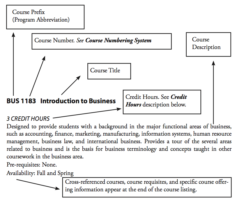 The following diagram illustrates how to read the course listings: